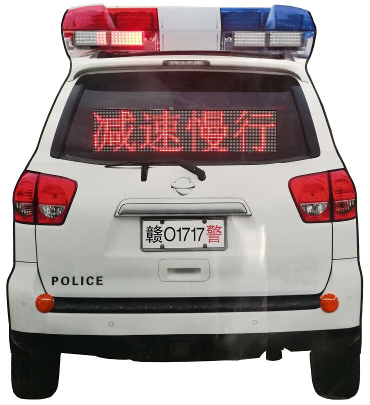 這款“仿真警車警示裝置”,是參照通用警車后背視覺圖樣,采用等比例尺寸噴繪圖案制作成面板,并按照實(shí)物的現(xiàn)狀布局,還配置了“后窗字幕”、“剎車燈”、“車頂警燈”等LED發(fā)光裝置,因?yàn)橥ǔTO(shè)置在取電不方便的偏遠(yuǎn)路段,所有設(shè)計(jì)采用太陽能供電,不仔細(xì)看就像真警車一樣,特別是在動態(tài)行駛狀態(tài)中,難怪司機(jī)們都以為遇到巡邏警車了。