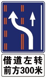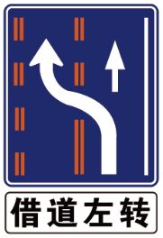 (2)標(biāo)志設(shè)置:借道入口端上游交叉口出口處合適位置,應(yīng)設(shè)置“對(duì)向借道左轉(zhuǎn)”預(yù)告標(biāo)志,版面參考圖 a),并配合可借道的控制時(shí)段輔助說(shuō)明。借道出口段上游合適位置應(yīng)設(shè)置“注意潮汐車道”警告標(biāo)志。指示標(biāo)志設(shè)置:借道入口端應(yīng)設(shè)置“對(duì)向借道左轉(zhuǎn)”說(shuō)明標(biāo)志,版面參考圖 b),若有條件可采用LED主動(dòng)發(fā)光標(biāo)志或內(nèi)部照明標(biāo)志(全透面板型)。