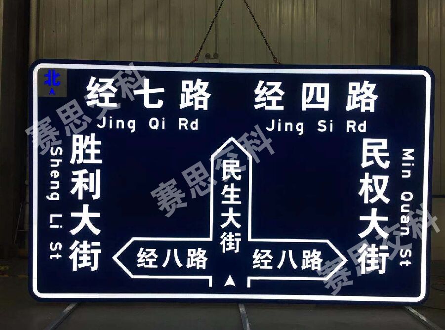 近日,濟(jì)南民生大街新添一批“半透式主動(dòng)發(fā)光指路標(biāo)志”,由南京賽思交通信息科技有限公司研制、生產(chǎn)。該標(biāo)志采用主動(dòng)發(fā)光工藝,不需要依賴外部光源照射,標(biāo)志體內(nèi)置光源投射標(biāo)志面,形成筆畫(huà)飽滿、對(duì)比度高的標(biāo)志發(fā)光信息,將指路標(biāo)志的交通語(yǔ)言信息在全天候展示得淋漓盡致,為整個(gè)民生大街添色不少,用主動(dòng)發(fā)光來(lái)關(guān)乎“民生”出行更加安全。