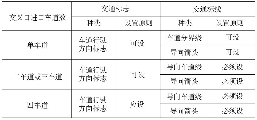 2)最大限度利用道路寬度合理設(shè)置車道的原則:積極開辟附加車道,增加進(jìn)口道機(jī)動(dòng)車道數(shù);