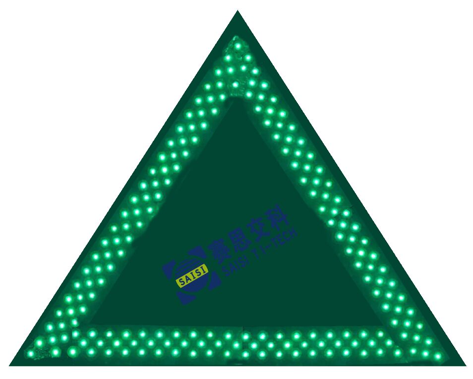 技術(shù)參數(shù):三角2400mm;綠底、無圖案、綠色LED管;LED點陣式主動發(fā)光標(biāo)志;太陽能供電或外接市電。