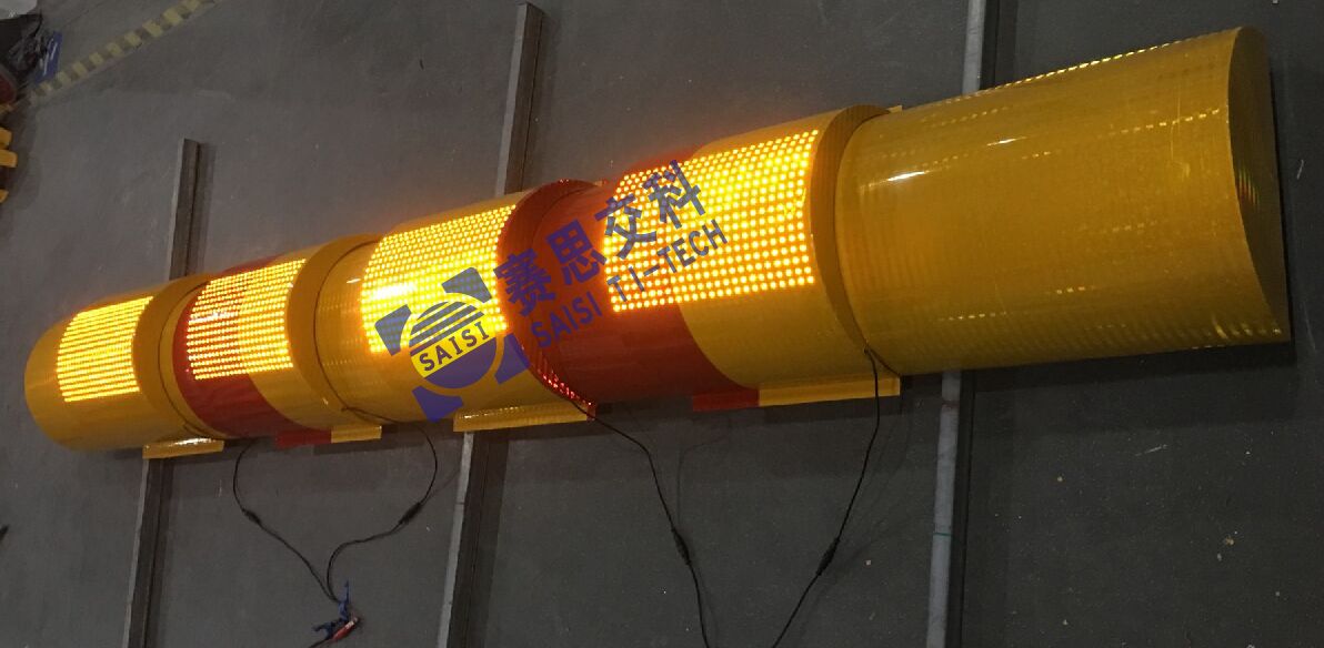參考尺寸:4000mm*400mm;紅黃相間底膜,紅黃LED管;LED點陣式主動發(fā)光標(biāo)志;太陽能供電或外接市電。