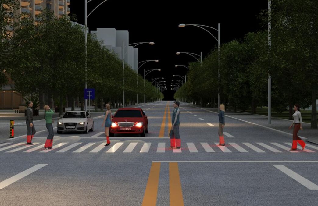 (三)在夜晚,過(guò)街行人的服飾與道路背景色接近,司機(jī)無(wú)法遠(yuǎn)距離準(zhǔn)確分辨。