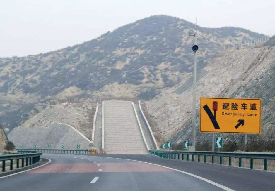 在長陡下坡路段,因車輛制動(dòng)失效,而導(dǎo)致車輛失控,在行車道外側(cè)增設(shè)避險(xiǎn)車道,供失控車輛駛離正線安全減速,規(guī)避事故危險(xiǎn)。